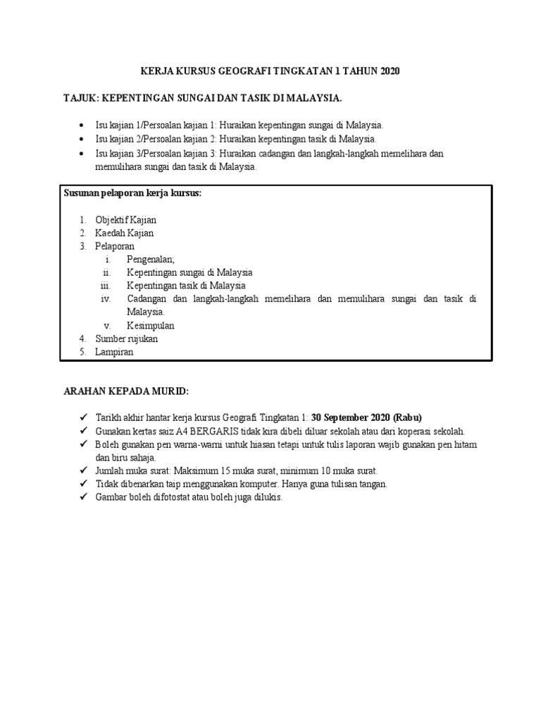 Kerja Kursus Geografi Tingkatan 1 Tahun 2020 Pdf